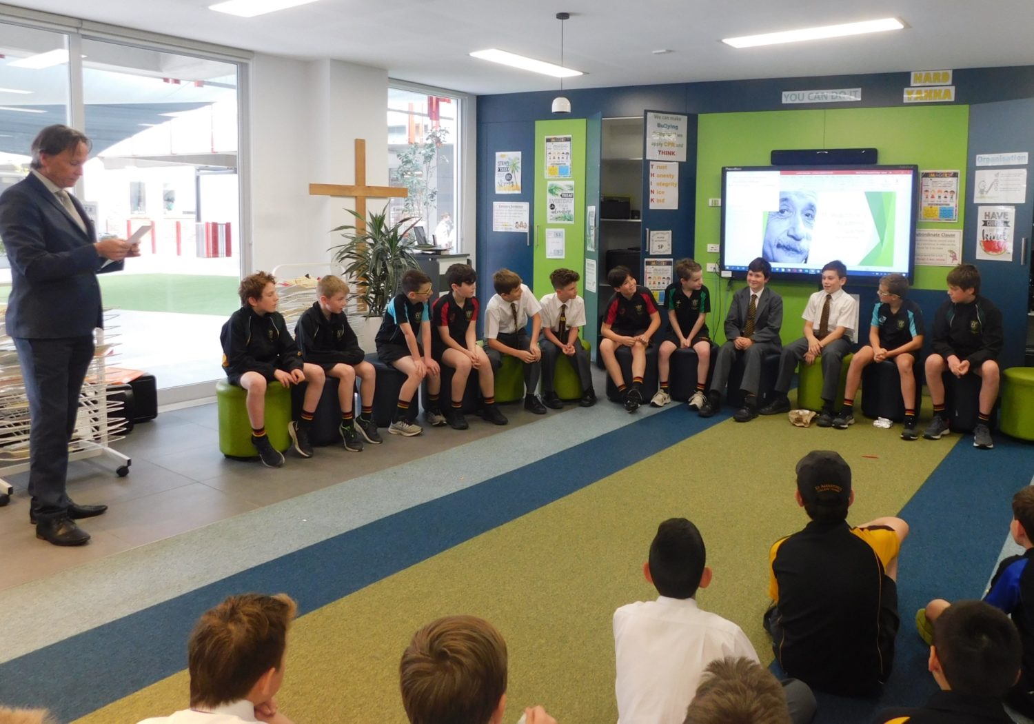 The Primary School SRC has met over the past three weeks to design the events, rules and protocols with the first event, ‘Spelling Bee’ taking place on Wednesday. This was followed by Theatre Sports on Thursday. The twelve events are: Spelling Bee, Theatre Sports, Times Tables Race, Musical Talent Quest, Sizzling Story Writing, Maths Problem Solving, Design and Make Challenge, Poetry Recital Monologue, Art Challenge, Technology Innovation, Debating and Connect 4.